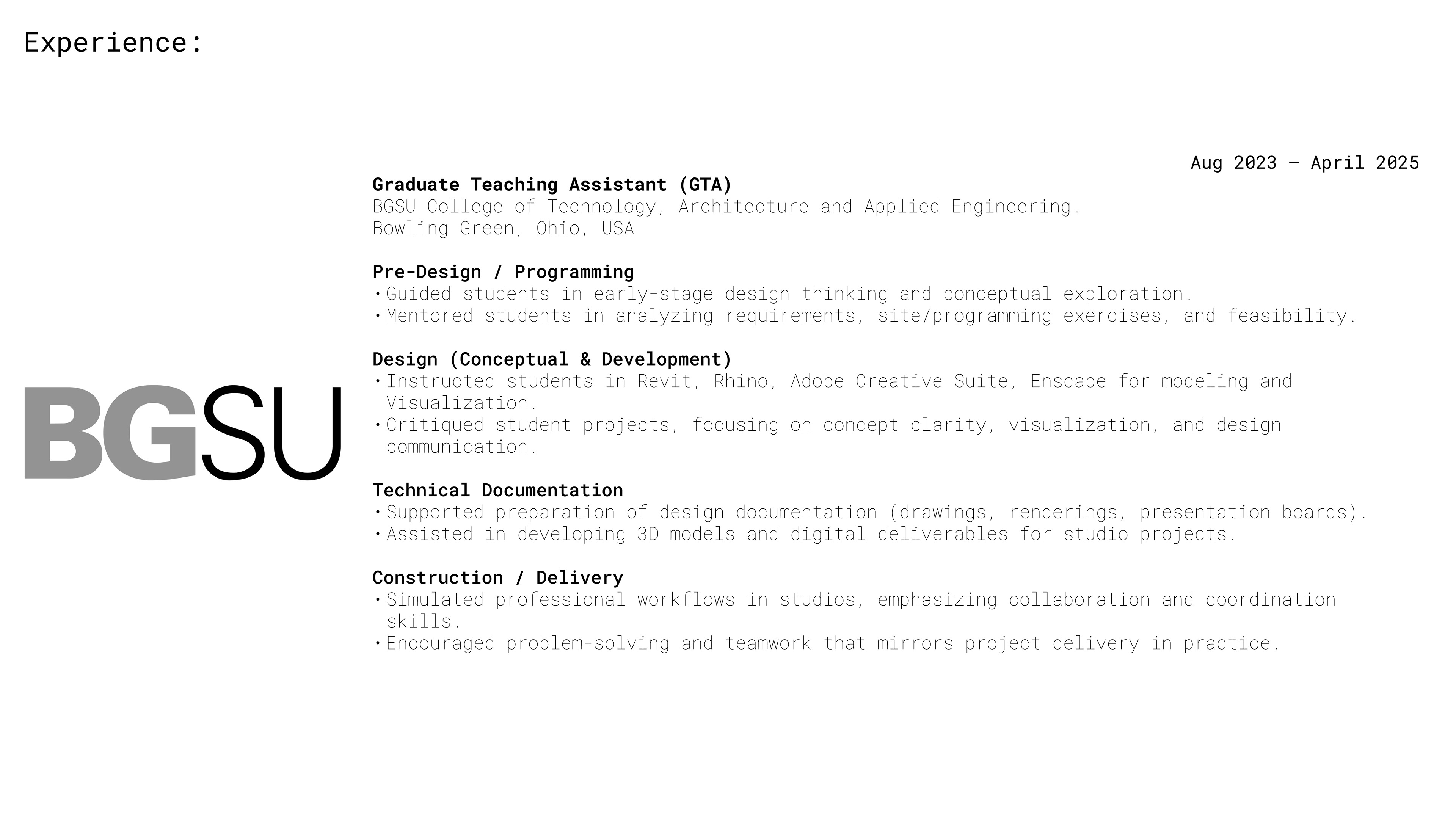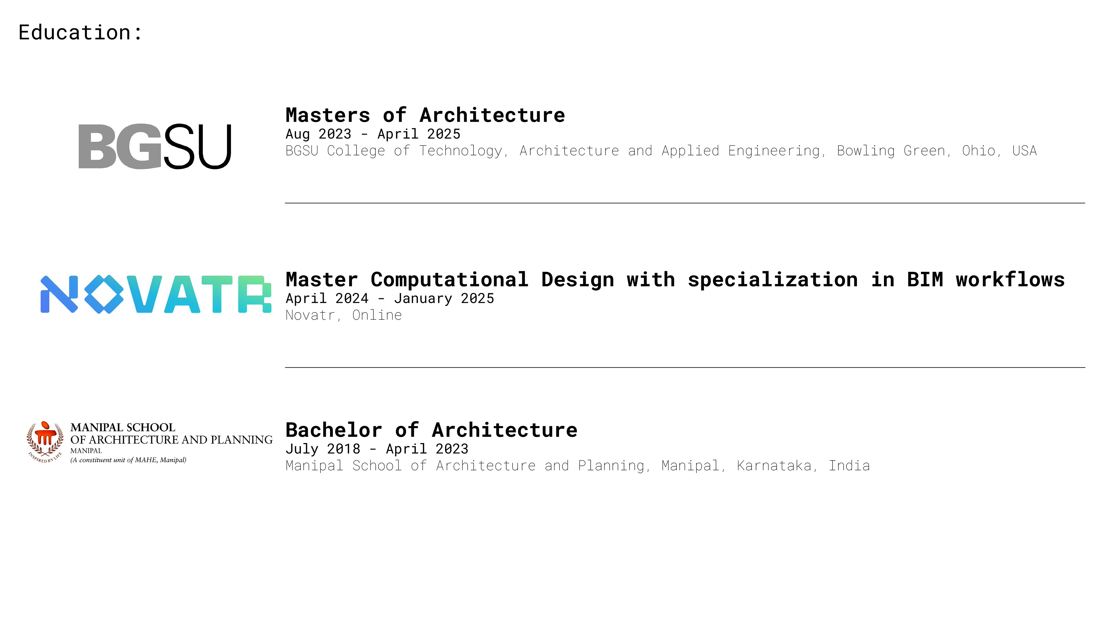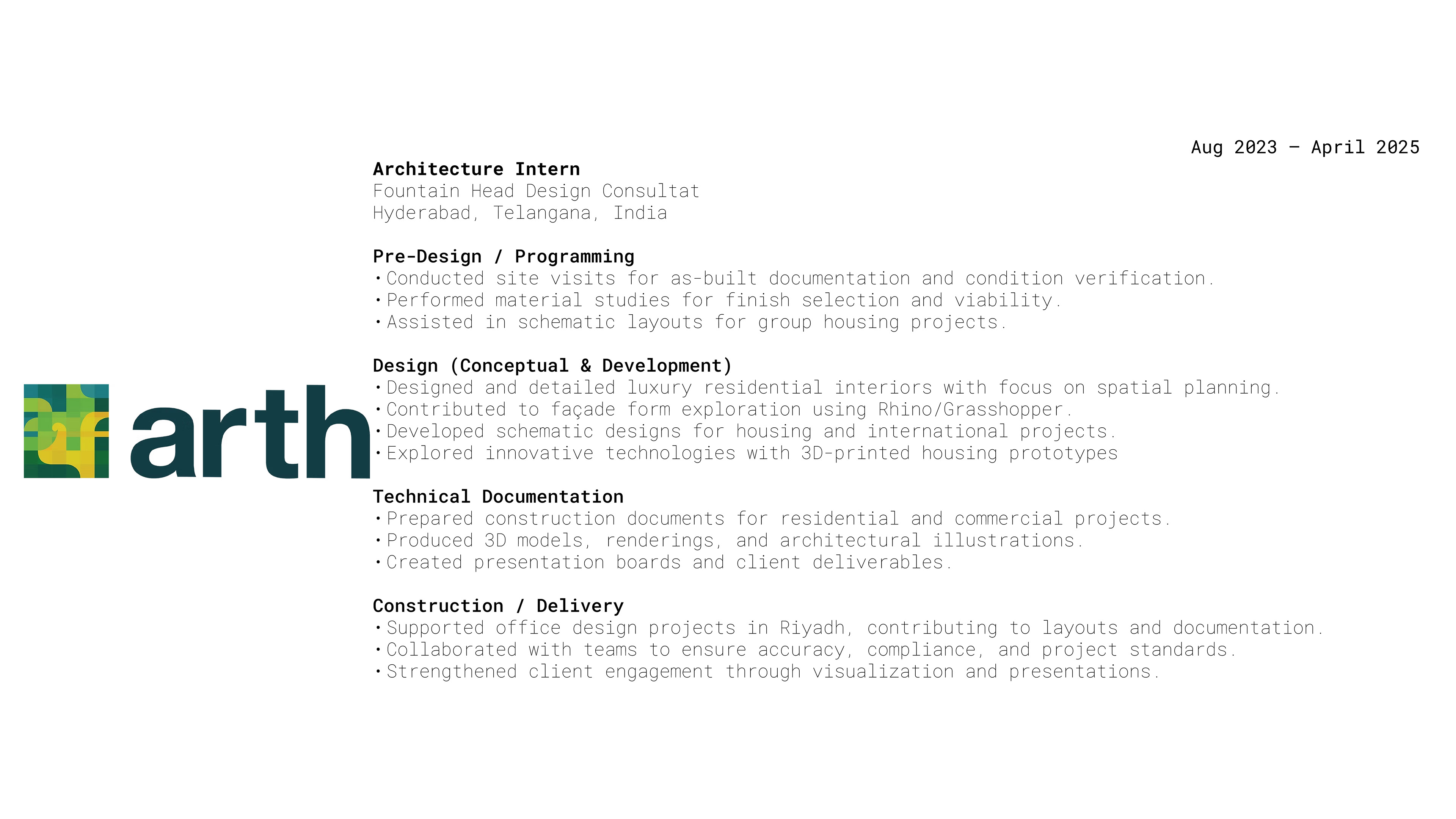 My path to architecture began in childhood, watching a temple rise beside my mother’s beachside workplace and helping my father build our family home. What started as a fascination with craftsmanship and material evolved into a passion for computational design, generative modeling, and AI-driven workflows. Today, I explore how data, algorithms, and digital fabrication can redefine the relationship between design intent and built reality, merging human intuition with machine intelligence.
